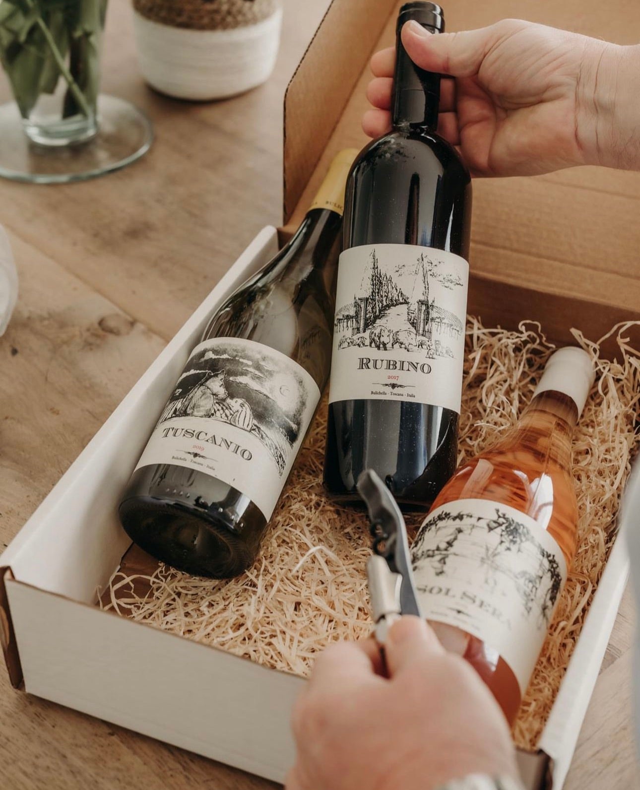 "Experience Tuscany with our Welcome Box: a selection of Bulichella’s finest organic wines, crafted for your first unforgettable taste."
